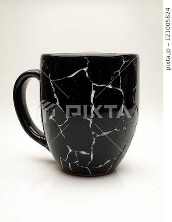 Broken Mug, Black Ceramic Cup Pieces, Broken Mug on White Background