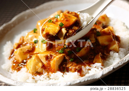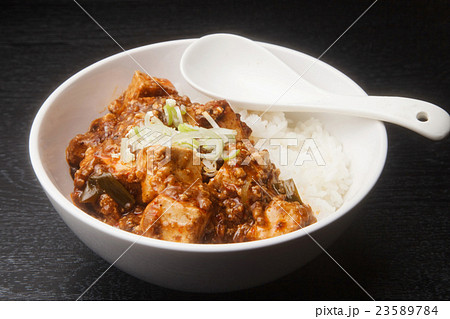 鳥瞰盛滿豆腐和蔥的麻婆碗