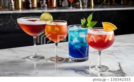 Assortment of colorful cocktails isolated on white background for cocktail party