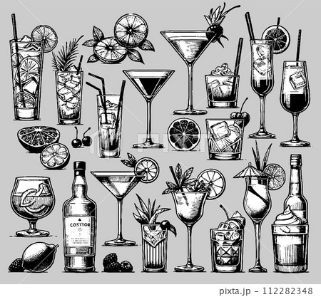 使用搖壺、量杯、酒吧勺等對馬提尼酒、雞尾酒、酒吧等進行圖像剪切。