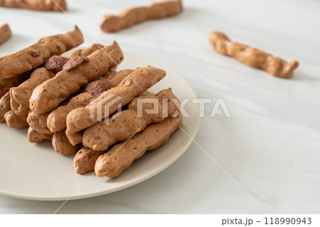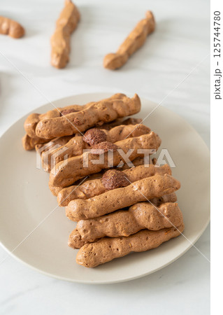 chocolate meringue stick on white background