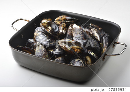 鍋子裡面的馬祖淡菜海鮮高角度視圖