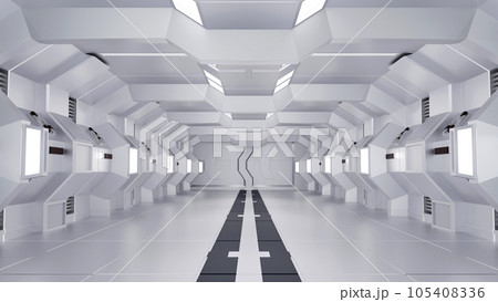 Inside spaceship or space station interior, Sci-Fi tunnel, corridor with empty space, 3D rendering