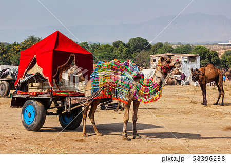 Camel taxi. Pushkar Mela Pushkar Camel Fair . Pushkar, Rajasthan, India