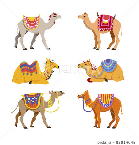 Camels with traditional dresses, Camels, Camelus dromedarius are desert animals for carry tourists on their backs