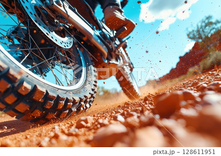 Dynamic Close-Up of Motorbike Tires on Dirt Surface