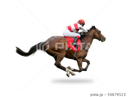 Race horse with jockey on the home straight