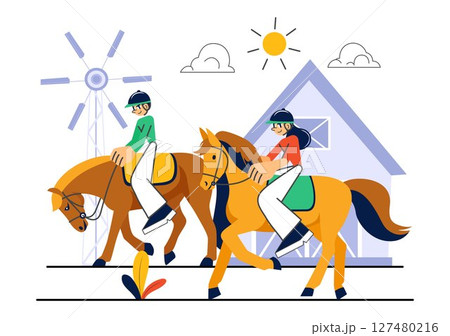 Horse Riding Vector Illustration Featuring Practicing Horseback Riding or Equestrian Sports in a Green Field with Flat Style Cartoon Background