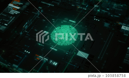 Fingerprint scanning for secure access, Cybersecurity technology data network, Global network internet connection security concept, futuristic abstract background, 3d rendering