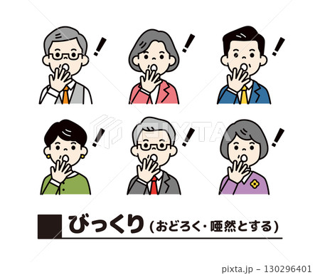 上身商務圖示集,一群表情驚訝的老年男女_Vector_Color