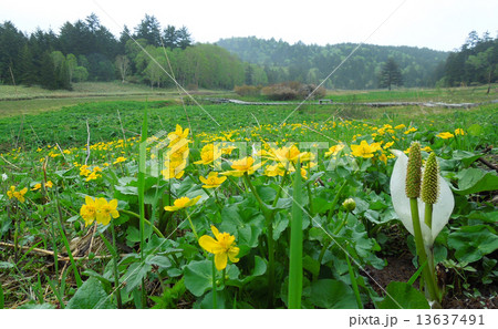 ≪群馬縣≫ 初夏在溪流中盛開的臭菖蒲和立金花在尾瀨國立公園散步