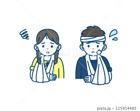 一個簡單可愛的插圖,展示了骨折和石膏的兒童。