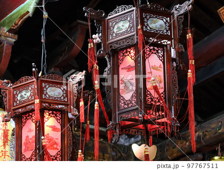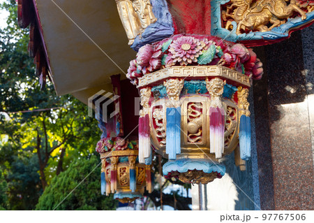 台灣寺廟建築屋頂飛簷與精緻木雕