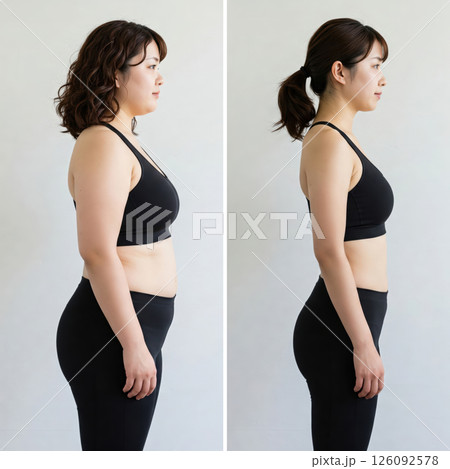 女性節食前後身體的變化(AI 產生的圖像)