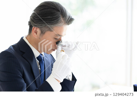 一位女士正在接受買家對她的包包和貴金屬的評估