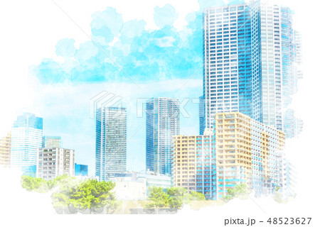 從Hamarikyu看到的Kachidoki的高層公寓團體