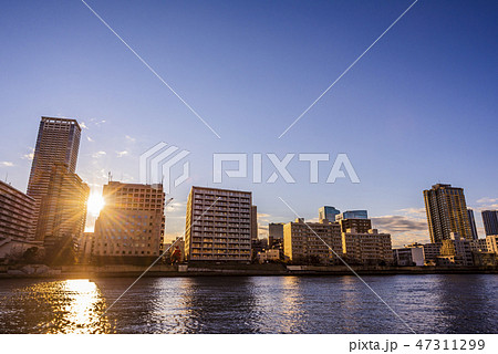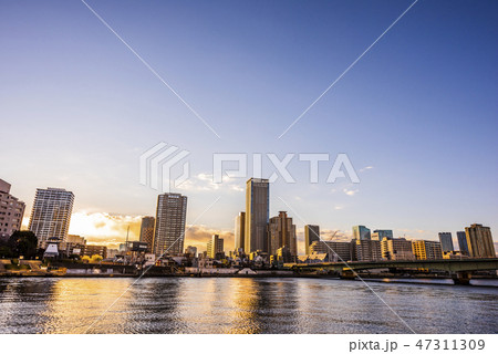 黃昏摩天大樓的弁天町街景 [9 月中旬]