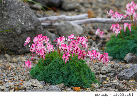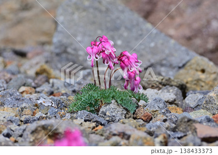 【高山植物】高山植物女王-荷包牡丹,盛開在富士山的礫石地帶。乘鞍[長野縣]