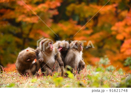 高崎山的紅葉和猴子(大分縣大分市高崎山)
