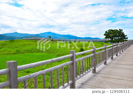 北海道斜裡鎮知床國家公園夏季景觀與高架木板路