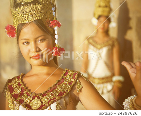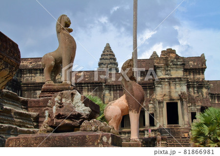 ankgor wat famous landmark temple detail near siem reap cambodia