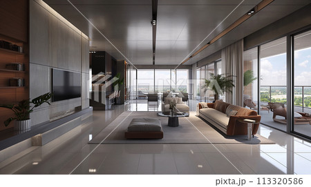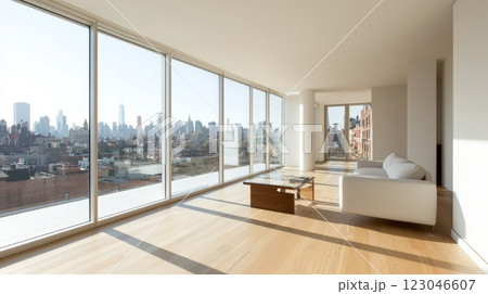 modern luxury apartment living room with panoramic city views