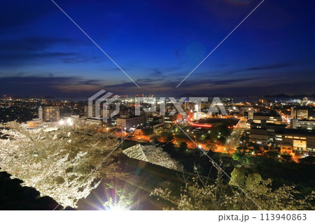 [香川縣]春天櫻花盛開時,從丸龜城欣賞丸龜市和瀨戶內海的夜景
