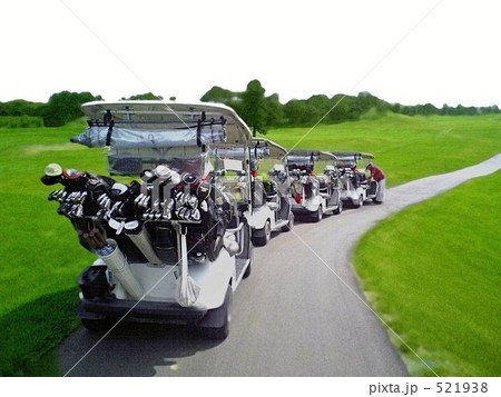 在藍天夏天高爾夫球場和推車的白色積雨雲