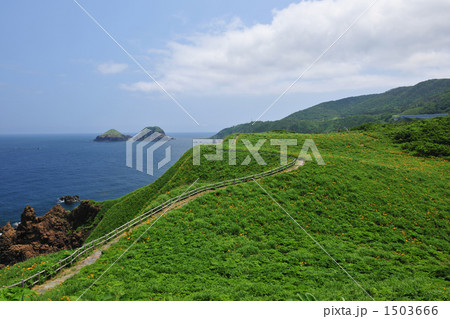 新潟縣佐渡市 - 佐渡島外海府海岸小野龜周圍的飛島萱草群落和日本海