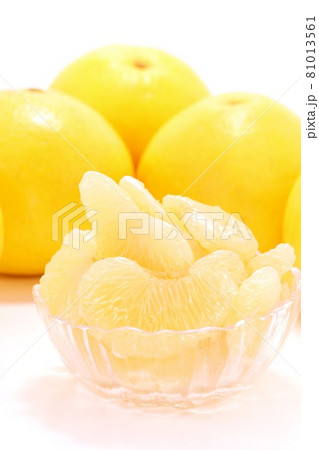 高知縣土佐柚子,大柑橘,去皮果肉,甜點,亮色背景
