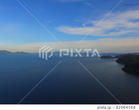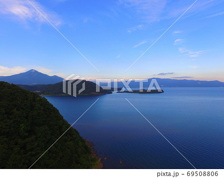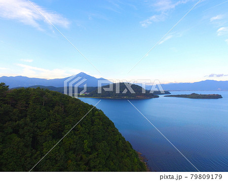稻城四郎湖與無人機的黃昏鳥瞰圖(福島縣會津若松市港區赤治大廈)