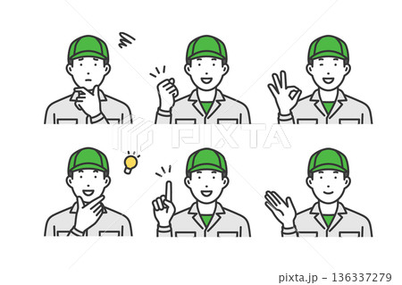 穿著工作服、戴帽子的男士,手勢姿勢套裝