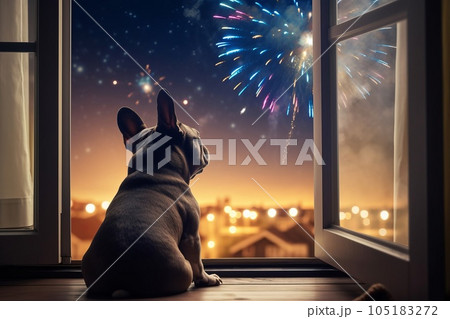 法國鬥牛犬看煙花 AI 生成圖像 AI 圖像
