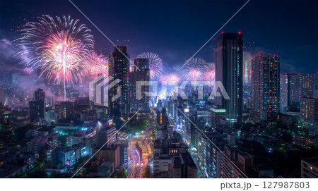 煙花與城市,夜空中的煙花 AI 生成圖像
