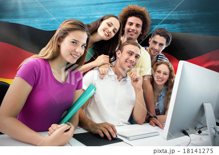 Composite image of smiling students in computer class