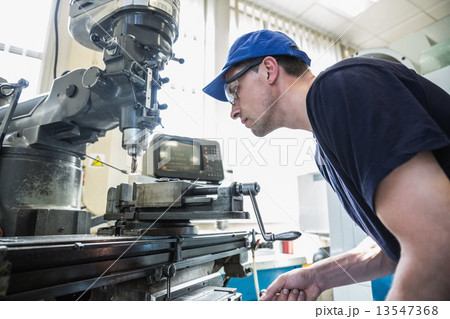 Engineering student using large drill