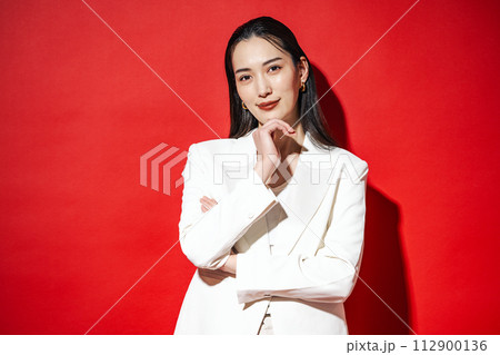 穿著白色西裝的職業女性肖像