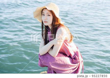 看海的草帽的少婦