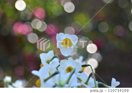水仙花與茶梅花在背景中