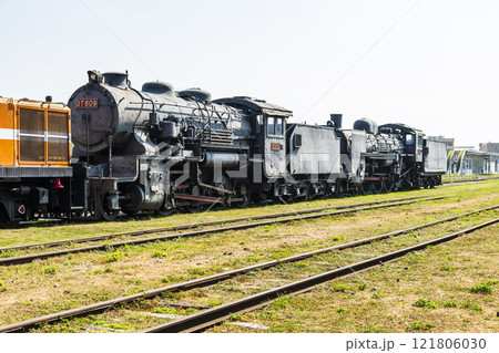 Close-up of the retired steam locomotives at the Takao Railway Museum in Kaohsiung, Taiwan.