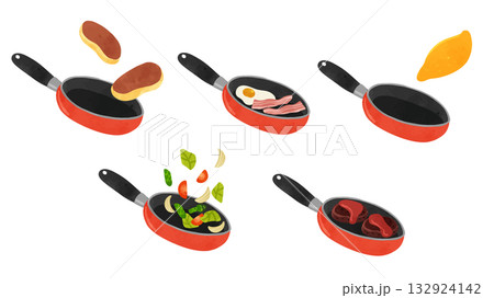 五種橘色煎鍋 - 水彩風格手繪向量插圖