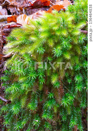 落葉和雪松苔蘚