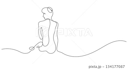 hand drawn of beauty woman back side looking sideways one line drawing continuous