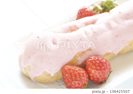 外型類似閃電泡芙的奶油泡芙,外層裹著白巧克力。