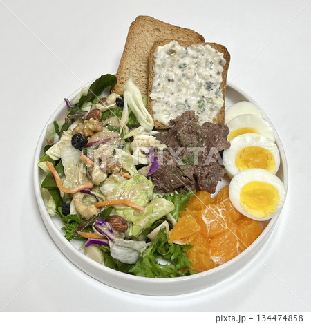 A delightful brunch spread featuring a mix of savory and sweet dishes, including fresh pastries, eggs, seasonal fruits, and a hot beverage. A perfect mid-morning indulgence.