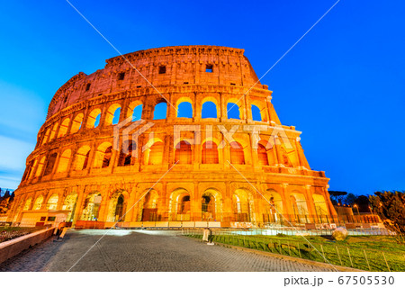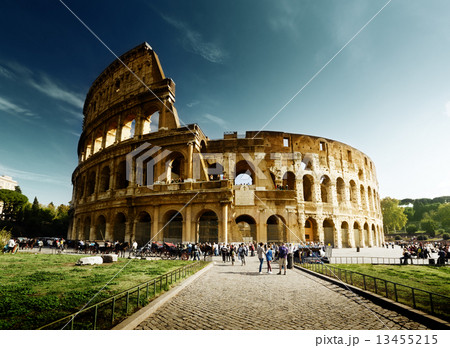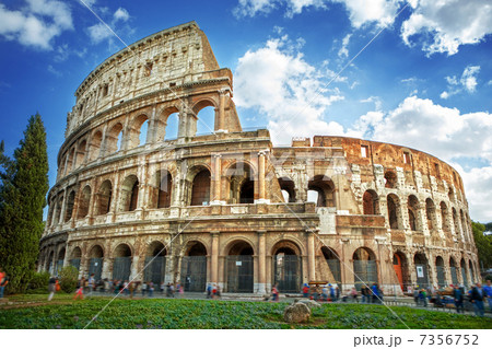 Famous Colosseum with blue sky and clouds in Rome. Italy.