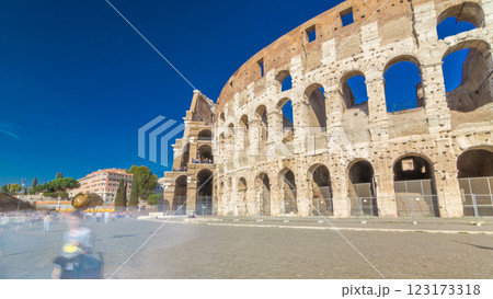 The Colosseum or Coliseum timelapse hyperlapse, also known as the Flavian Amphitheatre in Rome, Italy