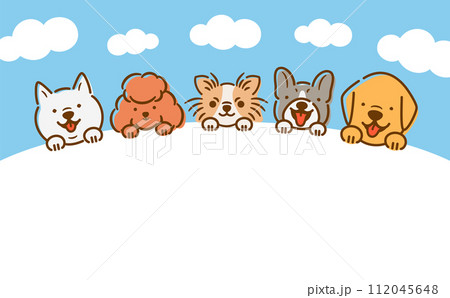 可愛的向量框架設計材料,具有複製空間,可用於狗在藍天下展示其臉的標題