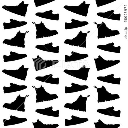Vector seamless pattern of sketch shoes silhouette
