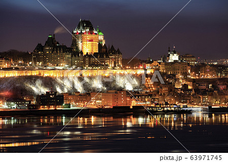 Autumn view of Old Quebec City waterfront from Saint-Lawrence Riverr in Quebec, Canada.